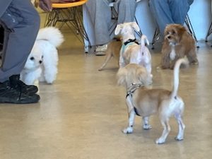 このように様々な性格の子たちとたくさん触れ合い、刺激を受けることによってわんちゃん同士の社会化を目指しましょう!7ヵ月までの子が対象となりますが、ご希望であれば何度でも参加可能となっておりますので、お気軽にお声がけくださいませ。