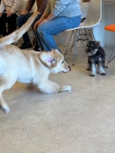 このように様々な性格の子たちとたくさん触れ合い、刺激を受けることによってわんちゃん同士の社会化を目指しましょう!7ヵ月までの子が対象となりますが、ご希望であれば何度でも参加可能となっておりますので、お気軽にお声がけくださいませ。