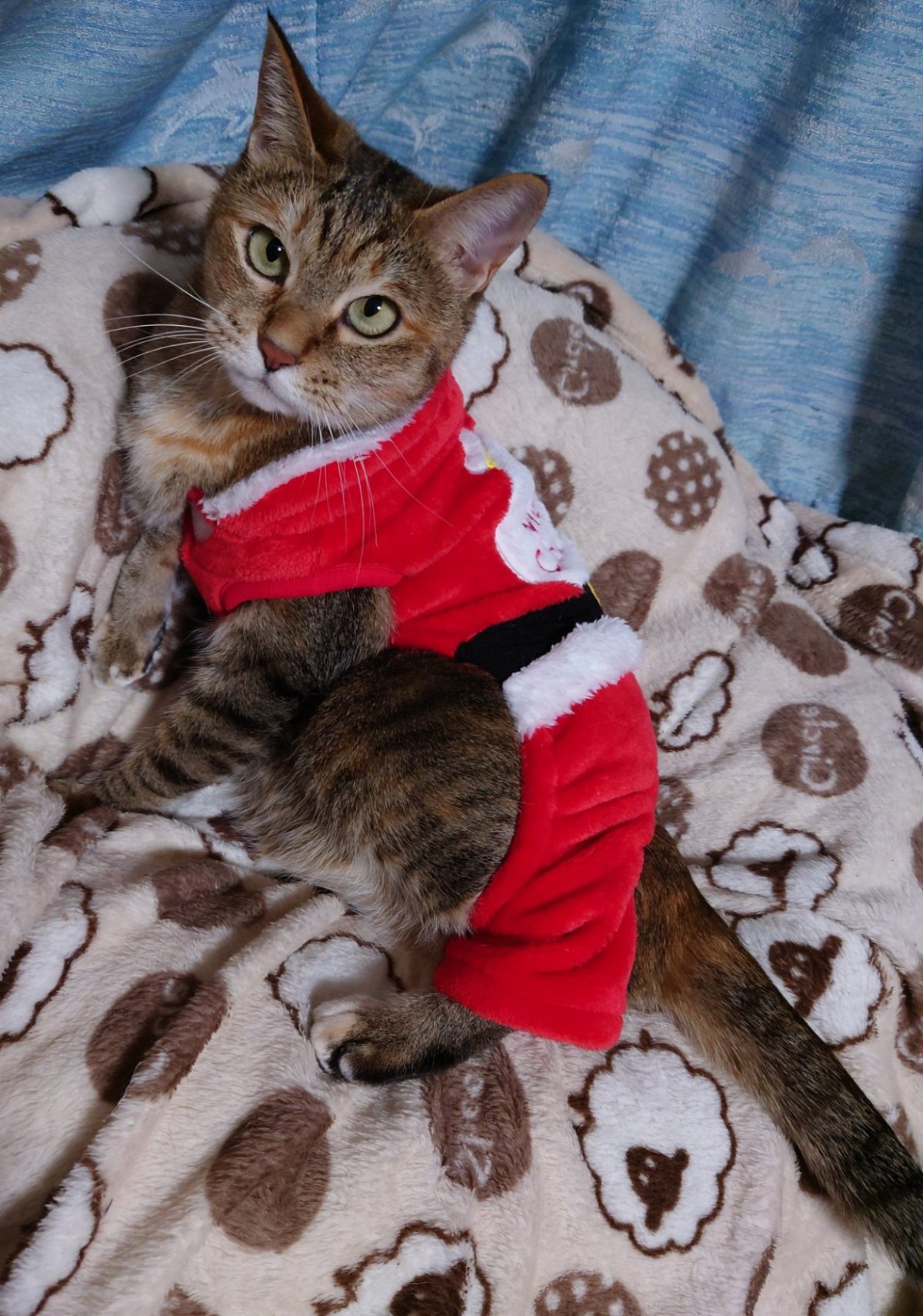先日ペットショップ巡りしていると、クリスマス仕様のペットウェアーのコーナーがあり、あまりに可愛すぎて普段服着せないのですが、衝動買いをしていまいました(;^_^A